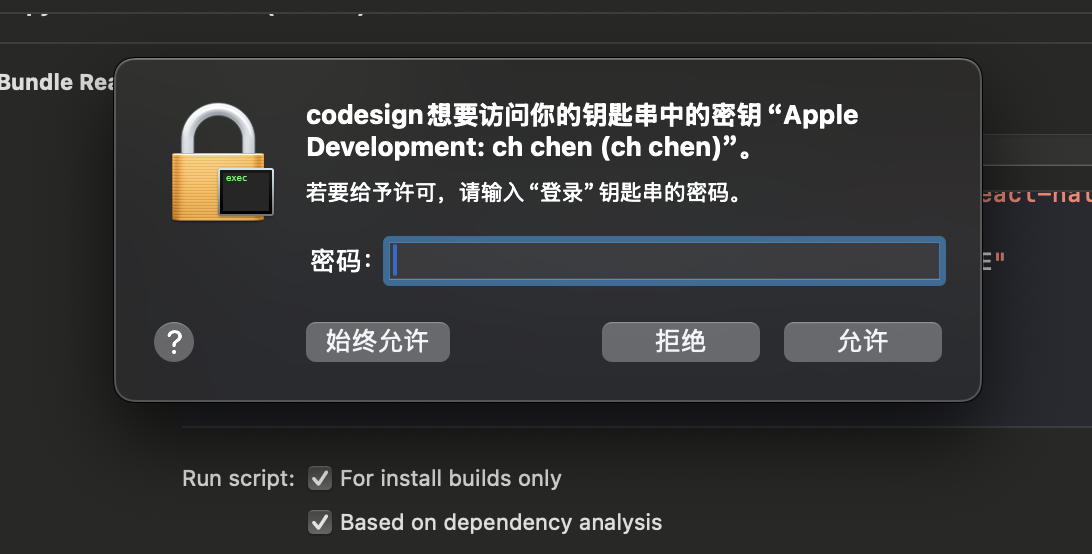 运行时如果弹出索要密码框,需输入Mac密码来允许该操作,需多次同意